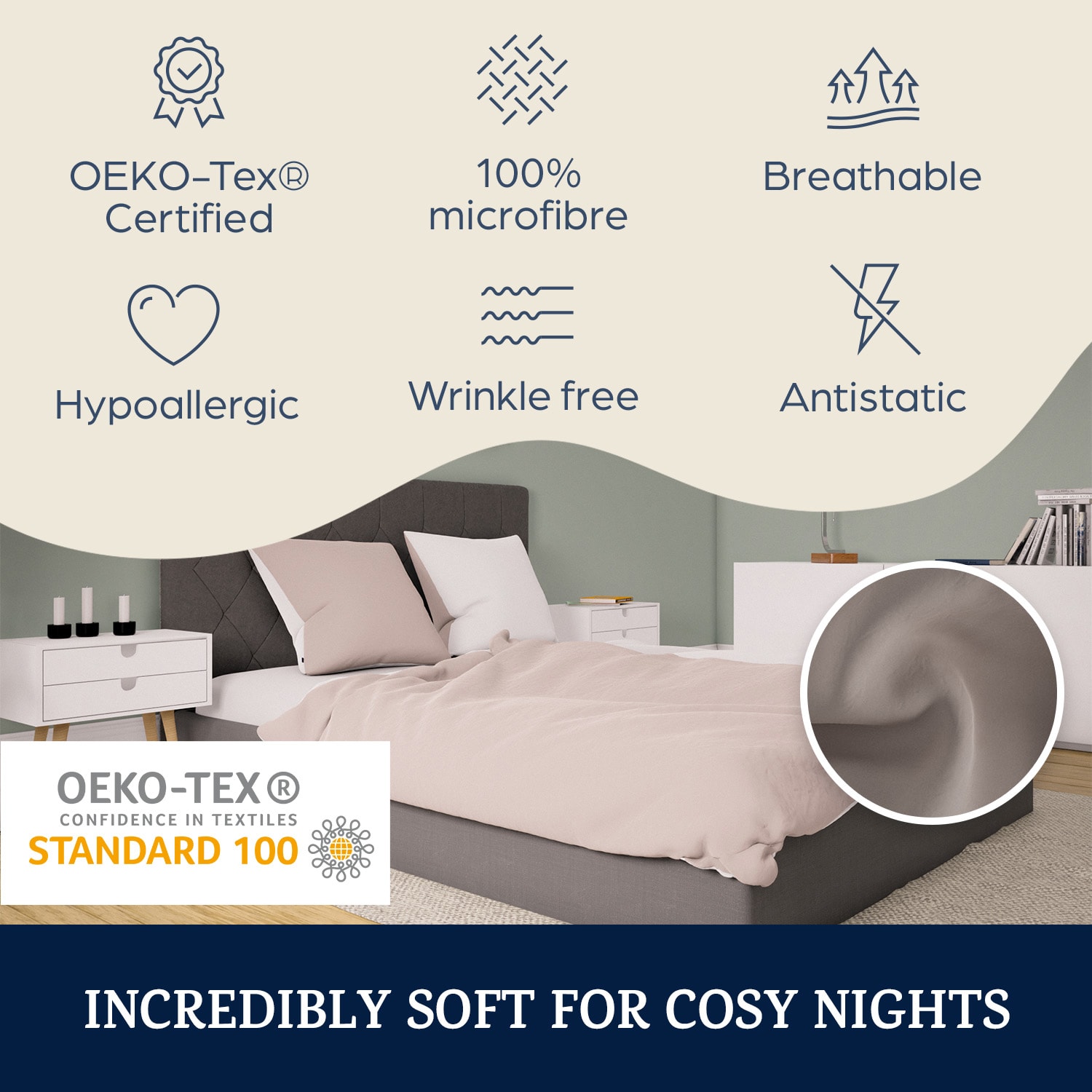 Posteľná bielizeň Soft Wonder-Edition od sleepwise je príjemne mäkká, priedušná, rýchlo schne a prakticky sa nežehlí.Tretinu svojho života strávite v posteli. Urobte si pohodlie! So Soft Wonder-Edition sme vyvinuli najjemnejšiu a najpríjemnejšiu celoročnú posteľnú bielizeň, akú vaša posteľ kedy zažila. Naši odborníci na tkaniny vybrali tie najjemnejšie vlákna na svete, ktoré sú výnimočne príjemné na dotyk: super mikrovlákno je 10× jemnejšie ako hodváb. Z jeho vlákna sa dá upliesť tkanina, ktorej výnimočné vlastnosti prekvapia aj odborníkov na textil: vďaka extrémne vysokej hustote vlákien je tkanina ešte jemnejšia a priedušnejšia ako luxusná egyptská bavlna. Posteľná bielizeň sa veľmi ľahko udržiava (pranie na 40° bez zmäkčovadla, schne v krátkom čase) a takmer sa nekrčí. Starostlivé spracovanie švov a zipsov tiež zaručuje dlhú životnosť. Pre všetkých milovníkov ľahkých látok so zamatovým pocitom: nechajte sa presvedčiť posteľnou bielizňou sleepwise Soft Wonder-Edition so super mikrovláknom, ekologickým certifikátom a obzvlášť ľahkou údržbou.