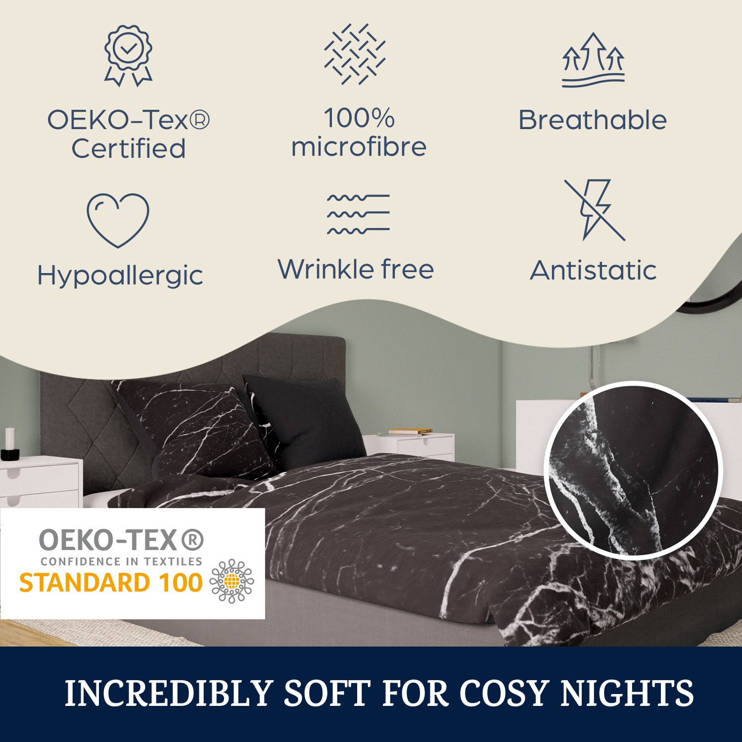 Posteľná bielizeň Soft Wonder-Edition od sleepwise je príjemne mäkká, priedušná, rýchlo schne a prakticky sa nežehlí.Tretinu svojho života strávite v posteli. Urob si pohodlie! So Soft Wonder-Edition sme vyvinuli najjemnejšiu a najpríjemnejšiu celoročnú posteľnú bielizeň, v ktorej ste kedy spali. Naši odborníci na tkaniny vybrali tie najjemnejšie vlákna na svete, ktoré sú výnimočne príjemné na dotyk: super mikrovlákno je 10× jemnejšie ako hodváb. Z jeho vlákna sa dá upliesť tkanina, ktorej výnimočné vlastnosti prekvapia aj odborníkov na textil. Vďaka extrémne vysokej hustote vlákien je tkanina ešte jemnejšia a priedušnejšia ako luxusná egyptská bavlna. Posteľná bielizeň sa veľmi ľahko udržiava (pranie na 40° bez zmäkčovadla, schne v krátkom čase) a takmer sa nekrčí. Starostlivé spracovanie švov a zipsov tiež zaručuje dlhú životnosť. Pre všetkých milovníkov ľahkých látok so zamatovým pocitom: nechajte sa v noci sprevádzať príjemnou posteľnou bielizňou Soft Wonder-Edition od sleepwise. Je ekologicky certifikovaná a mimoriadne ľahko sa čistí.