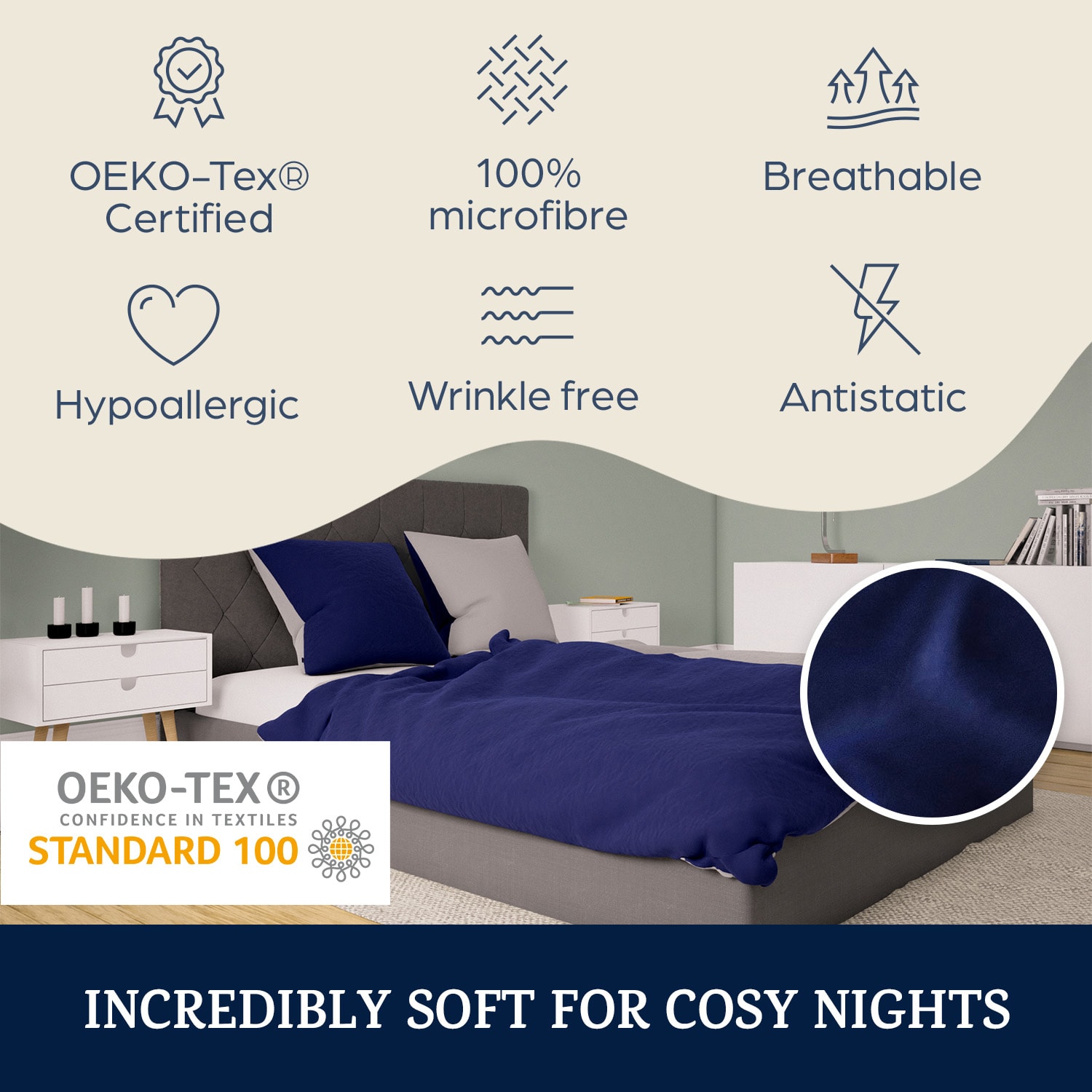 Sleepwise Soft Wonder-Edition, posteľná bielizeň, tmavomodrá, 155 × 200 cm, 80 x 80 cm – Kúpiť