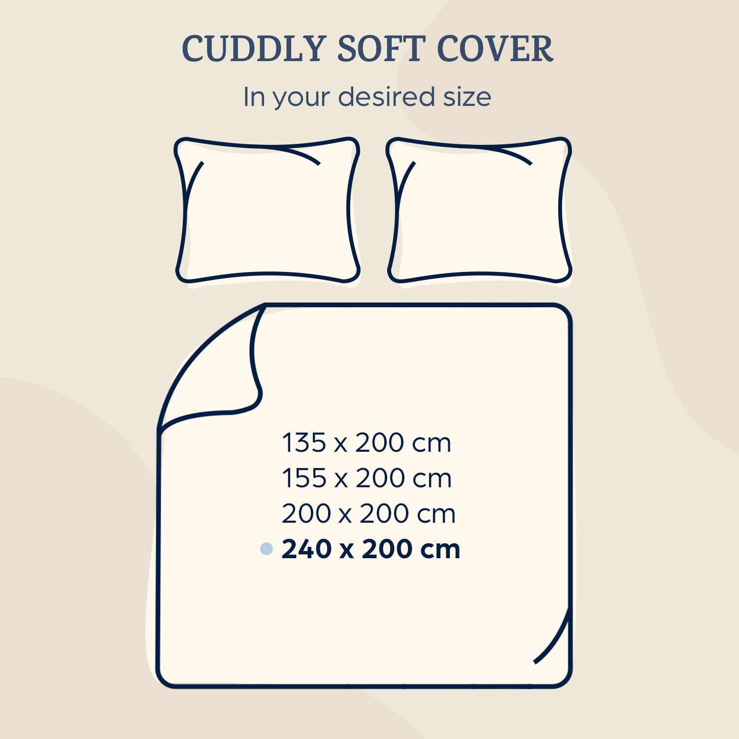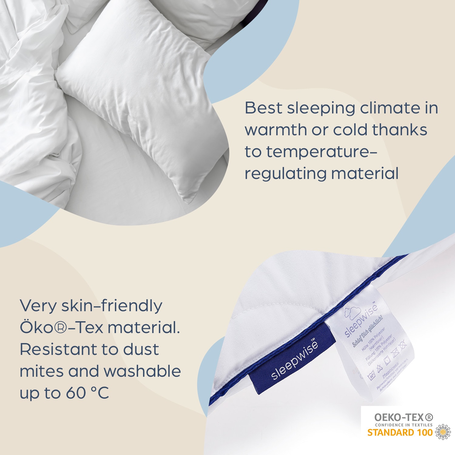 S paplónomThe Cloud od sleepwise hovorí názov za všetko: nadýchaný, mimoriadne mäkký paplón ti umožní dobre spať po celý rok a zobúdzať sa oddýchnutý.Táto celoročná prikrývka premení tvoju posteľ na dokonalý obláčik. Mäkký, hypoalergénny poťah z mikrovlákna s dostavou tkaniny 1200 TC a syntetická výplň z dutého vlákna zabezpečujú optimálnu tepelnú reguláciu. V lete aj v zime budeš spať pohodlne. Paplón The Cloud je odolný voči roztočom v prachu z domácnosti, je vegánsky a dá sa prať pri 60 stupňoch. Veľmi rýchlo schne a svoju nadýchanosť si zachováva počas mnohých blahodarných nocí a prespatých dní. S prikrývkou The Cloud od sleepwise sa dokonale vyspíš každú noc.